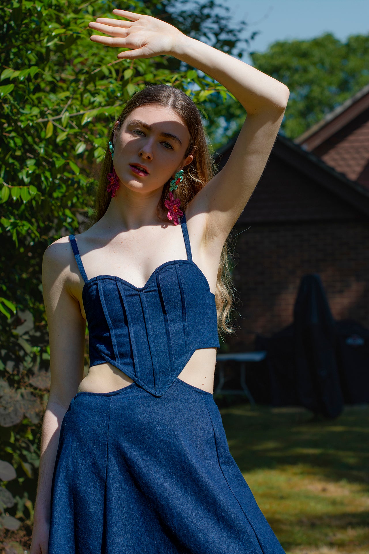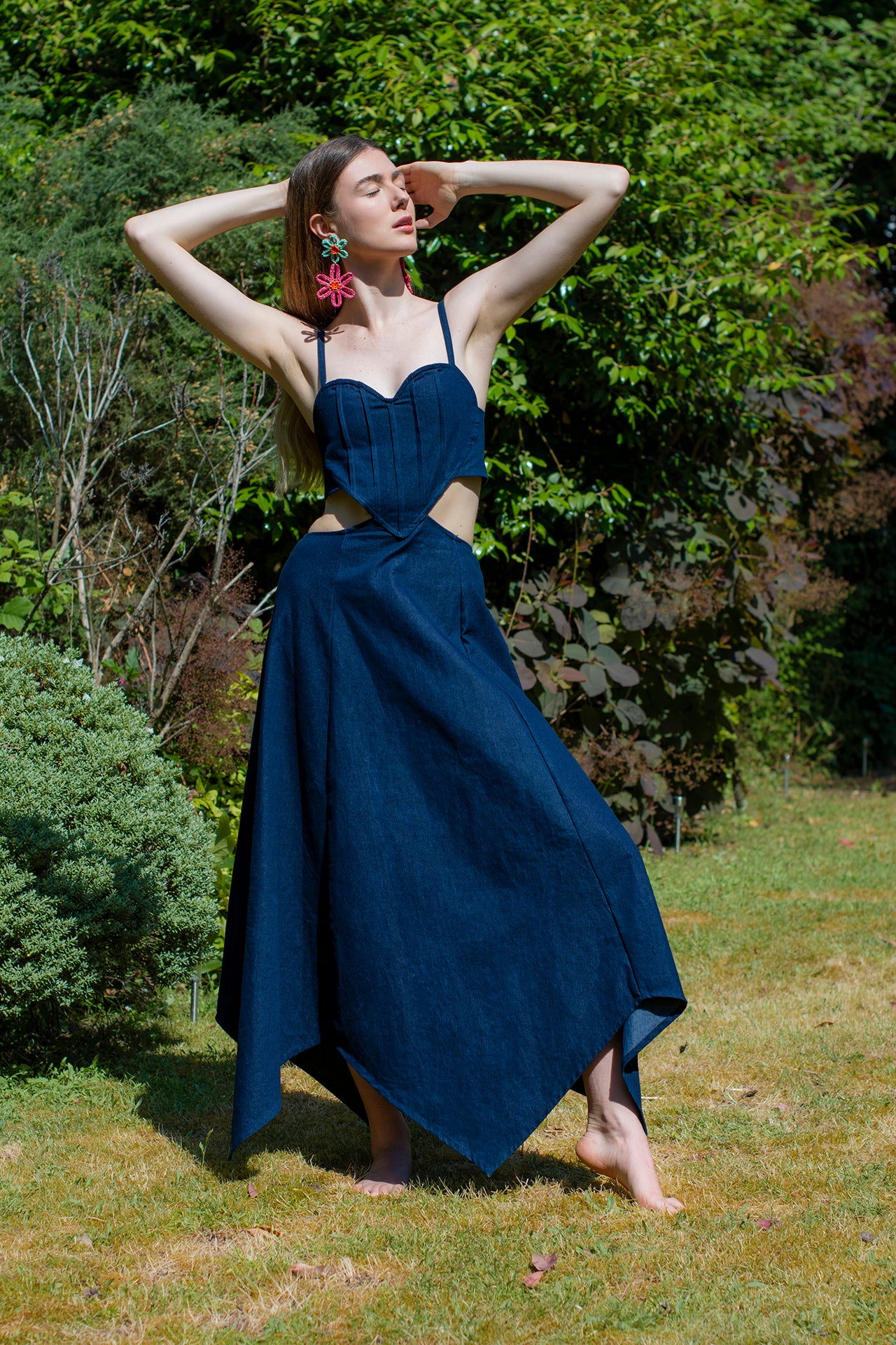 Made from a denim blend fabric, this head-turning dress is also comfortable to wear.