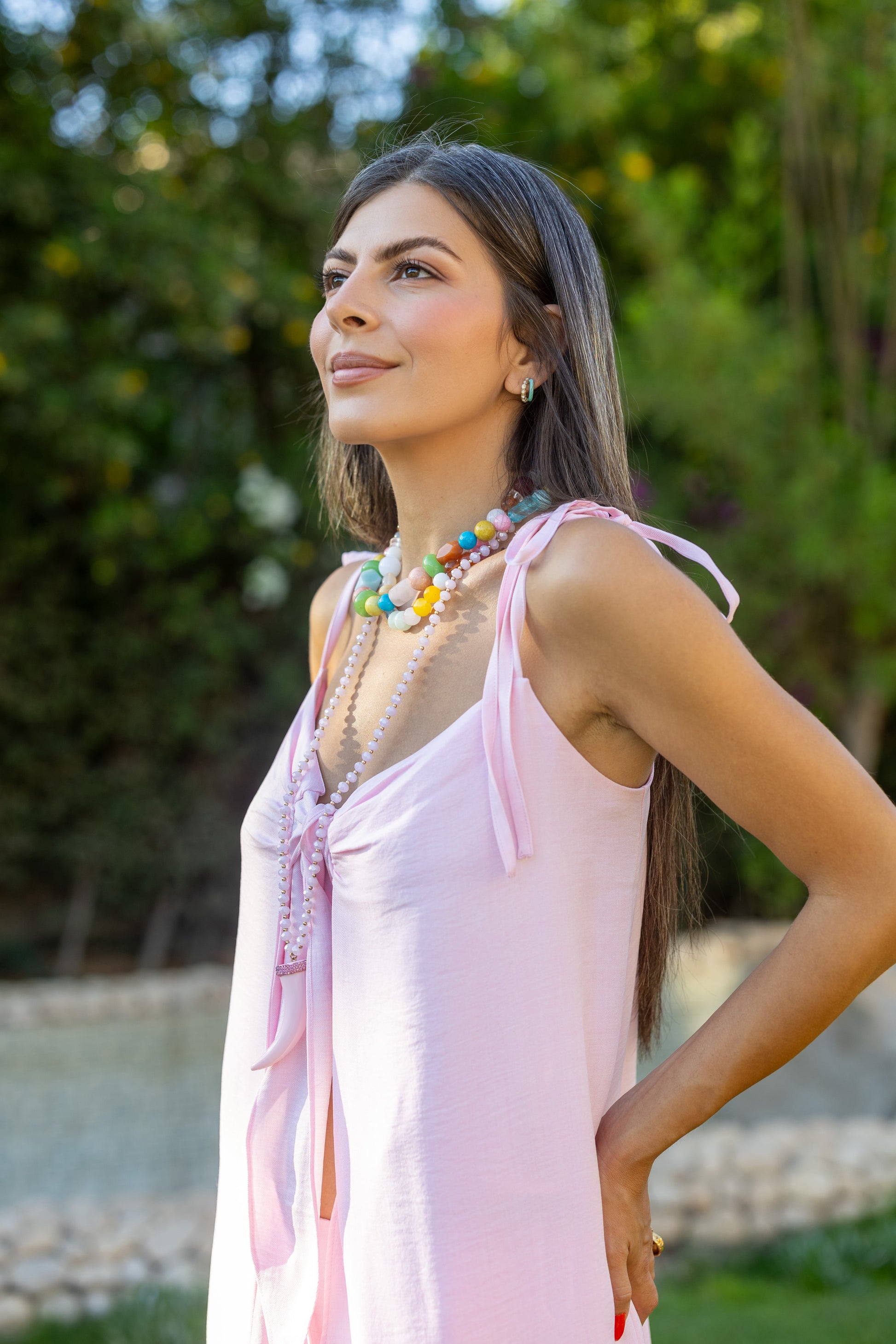 A feminine twist in a boho style with the beautifully flowy fabric and ruffles.