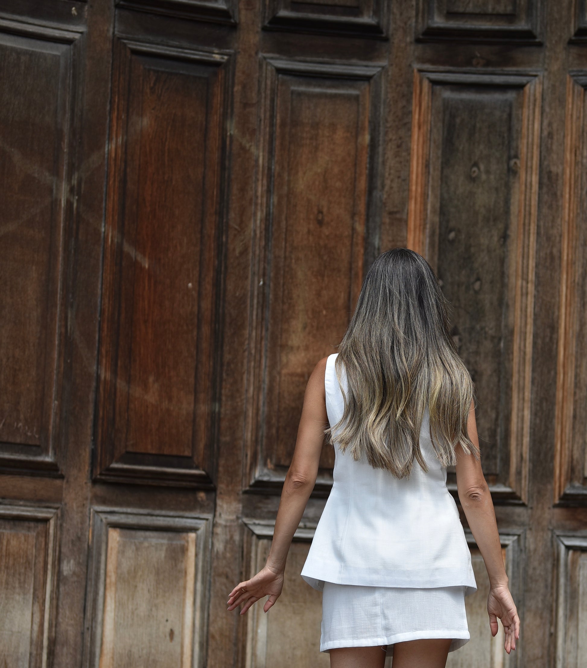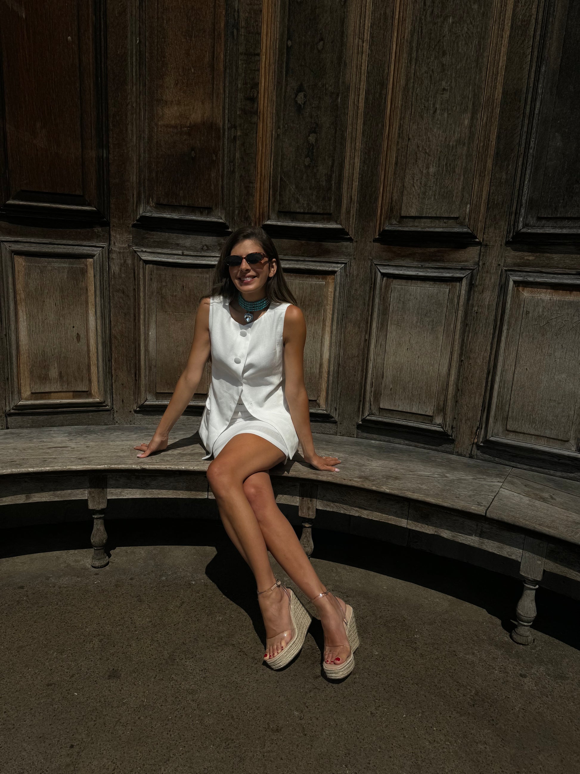 Pure linen long line vest and mini skirt set.